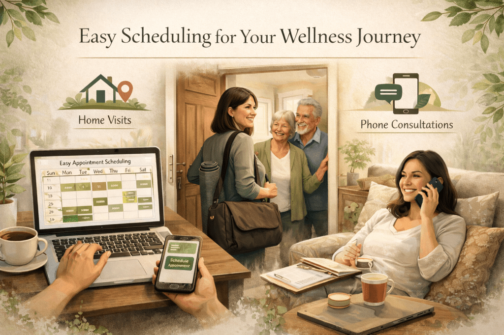 Discover our flexible scheduling for home visits or on-the-go consultations.